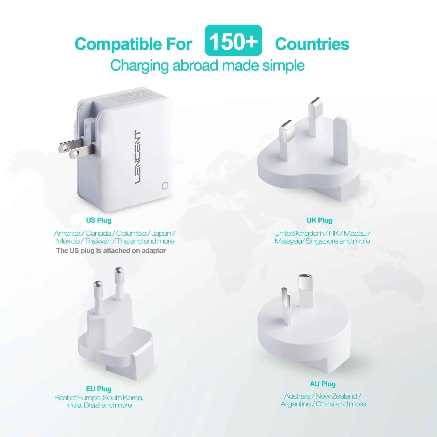LENCENT Travel Adapter Universal Power Adapter with 4 USB Ports Wall Charger for US UK EU AUS Universal Travel Power Charger