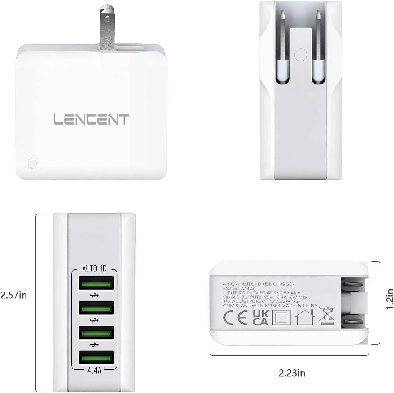 - Auto-identify Technology - The Lencent multi USB plug charger would identify the connected devices intelligently and provide optimized charging.
