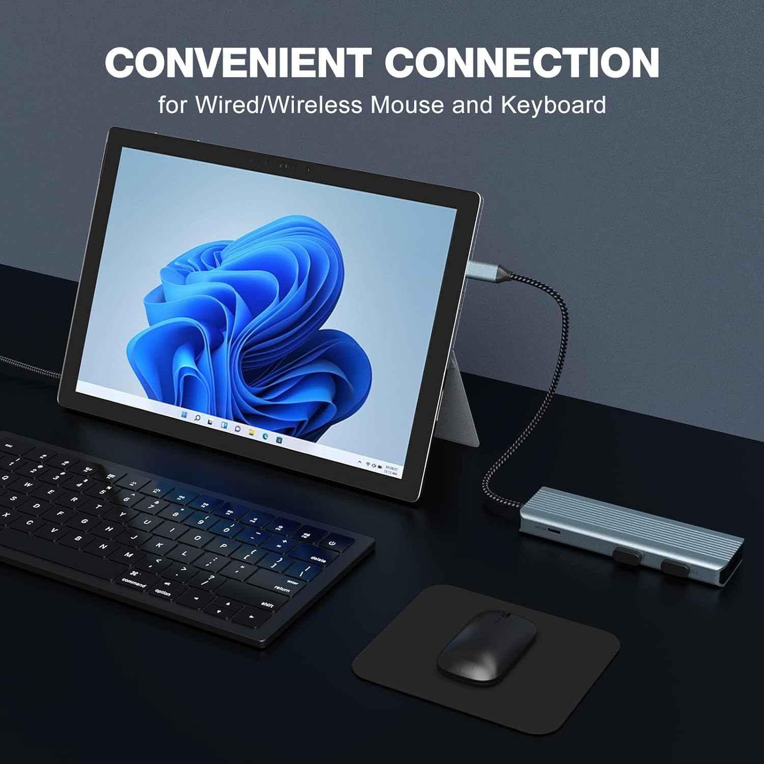 - Extreme Expansion 9-in-1 Docking Station - USB C Adapter with 3 USB-A Ports (Fast Data Transfer, Connection of Mouse, Keyboard and Other Devices) 4K HDMI Ultra HD 3D video, game projection or PPT to HD TV, monitor or projector. 100 PD fast charging (as fast as original charger) SD/TF card slot supports capacity up to 512GB.