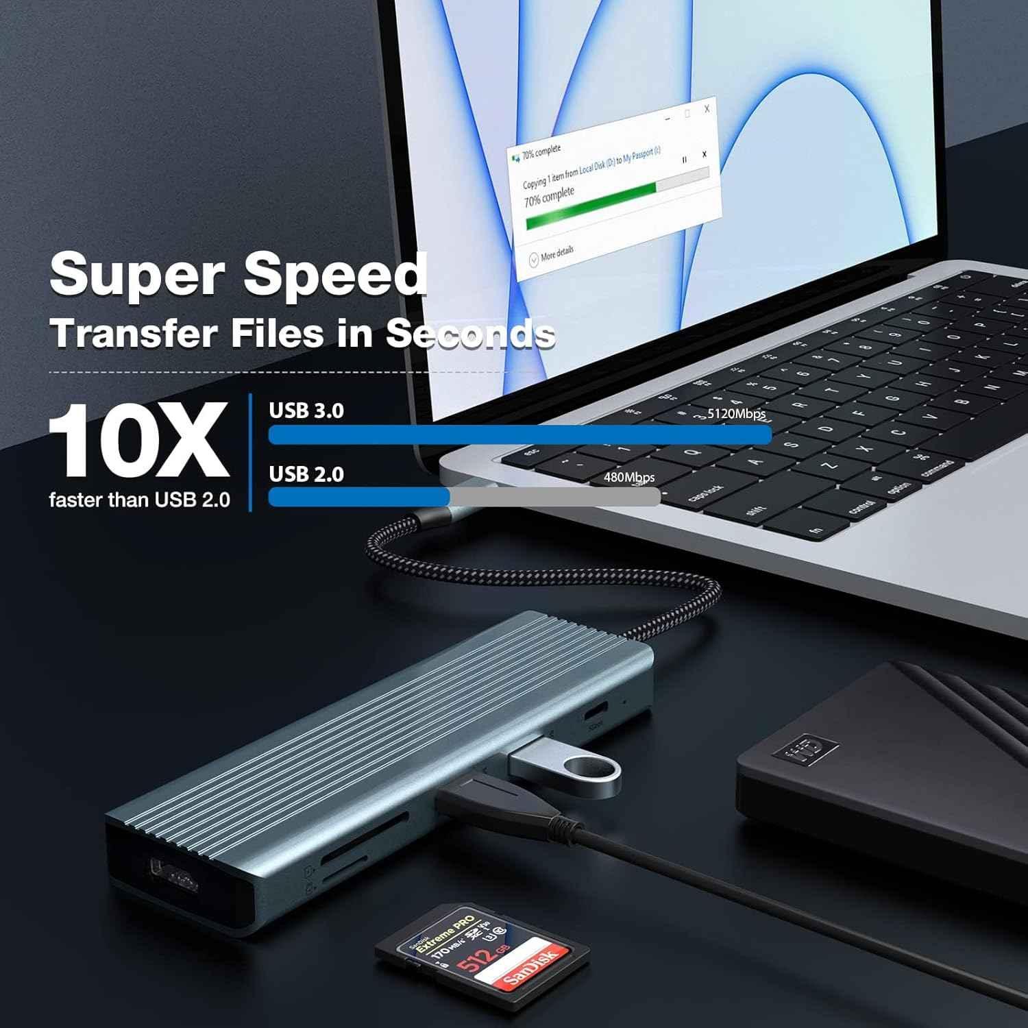 - Plug and Play - Strong Cooling - The USB C Hub can be used directly without drivers, programs or software. The company's high-level intelligent chip and various protection systems to prevent over-current, over-voltage, short-circuit and high temperature ensure the safety of file transmission and storage.