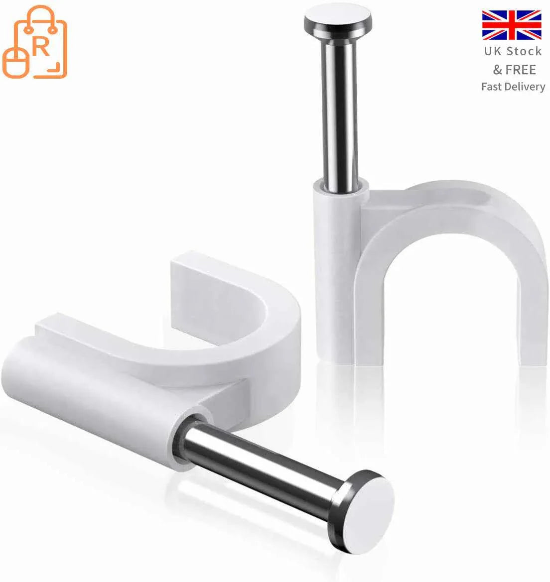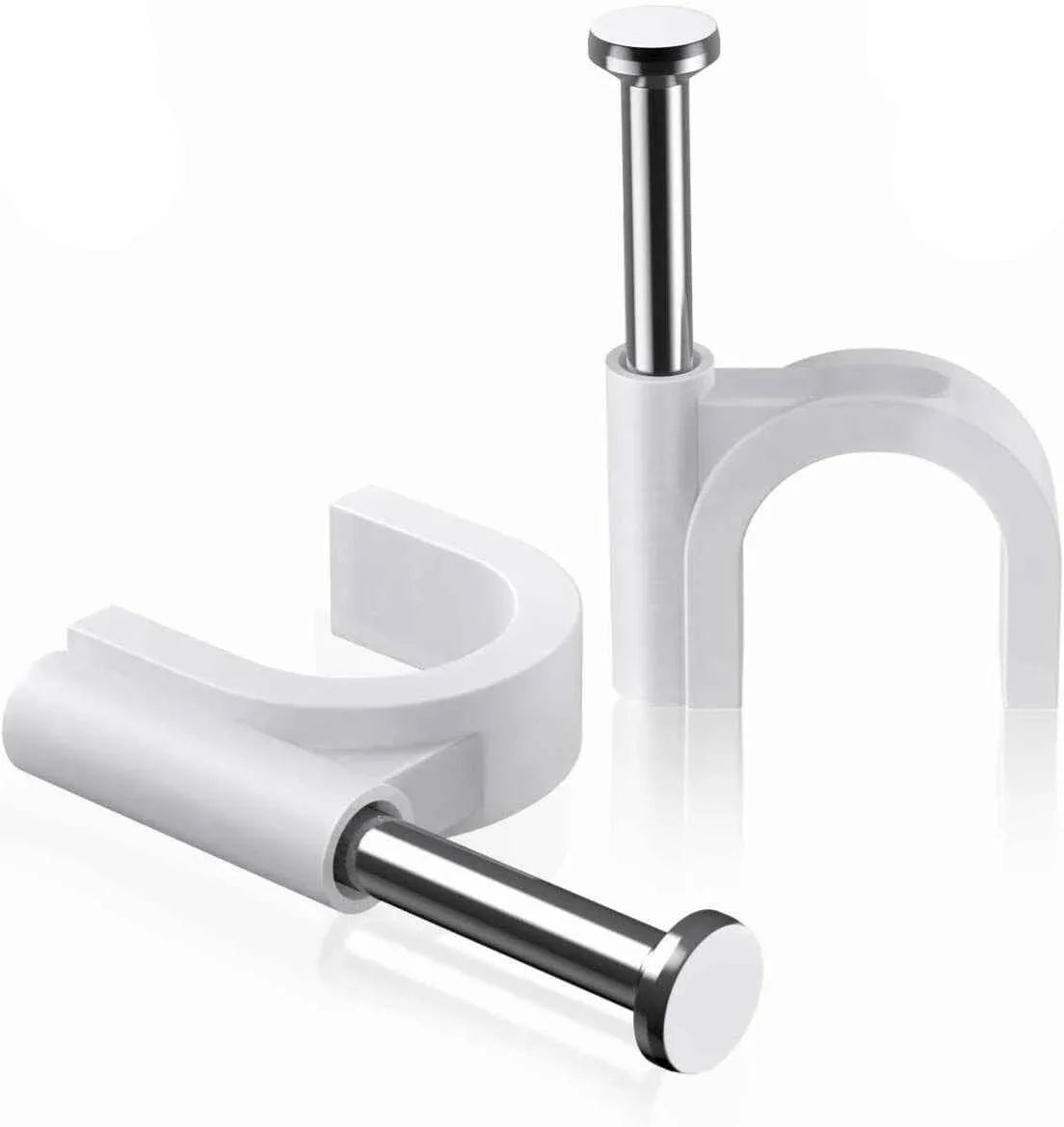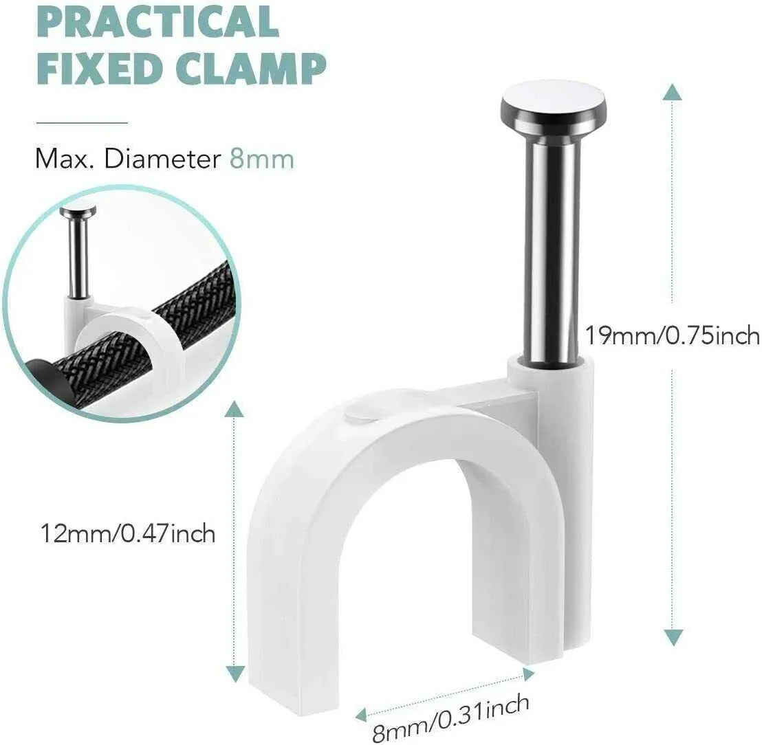 - Compact Size: White round profile and small size (0.47*0.31*0.75inch), simple and stylish, makes it not easy to notice even if it is used in the wall of living room. A pack with 100 pcs cable clips, enough to organize many cables of home or office.