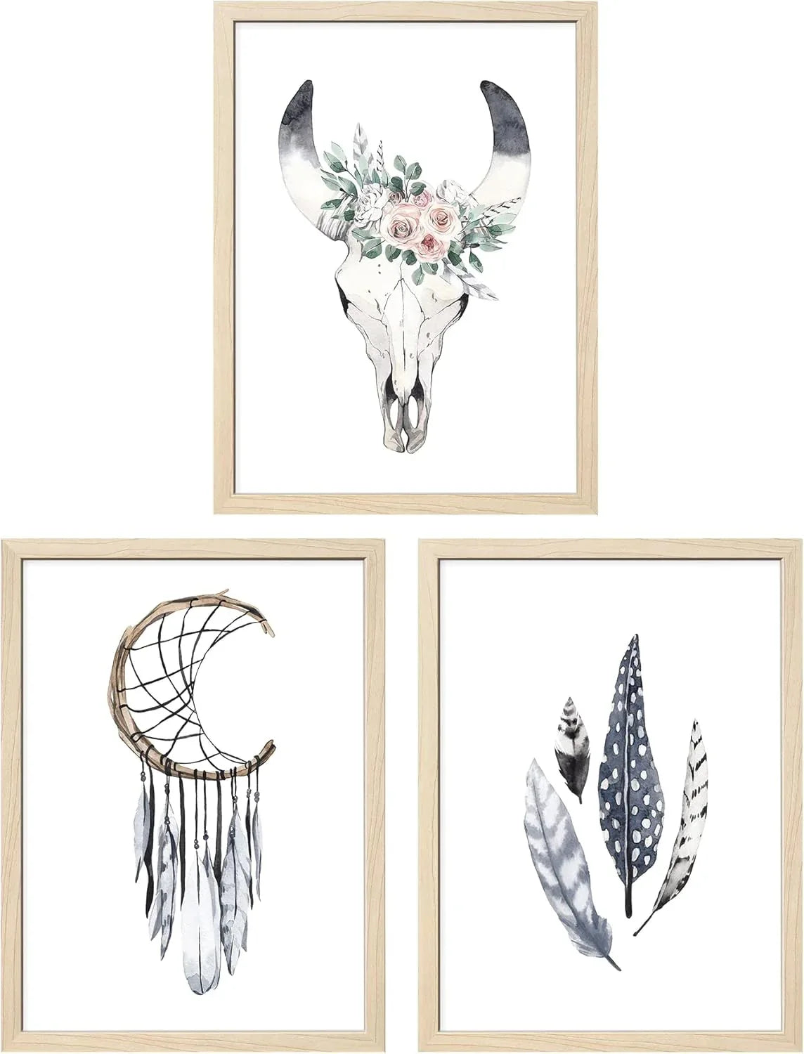 - This Gallery Wall Frame set with feather, skull and dreamcatcher brings a BOHO chic view to your home.