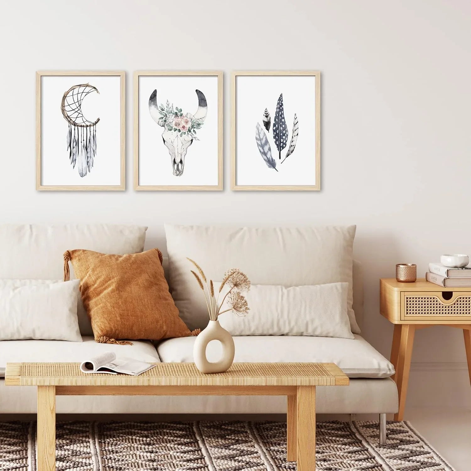 Gallery Wall Frame Set of 3 with Boho Pictures for Wall Art Decor or Home Decoration