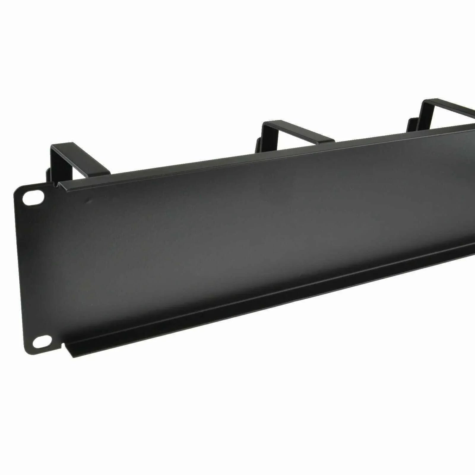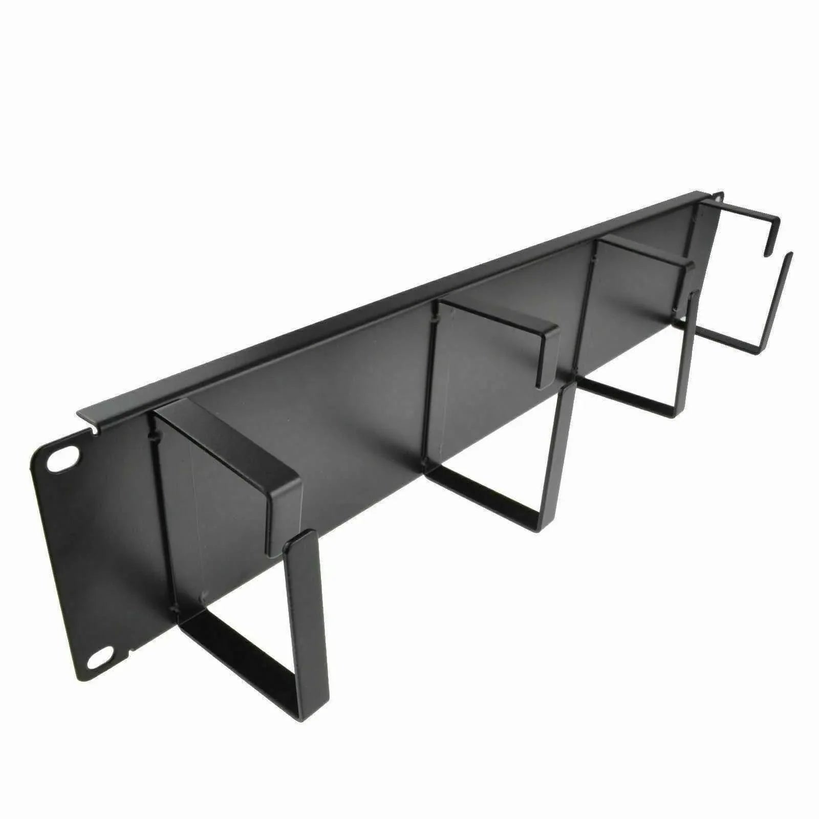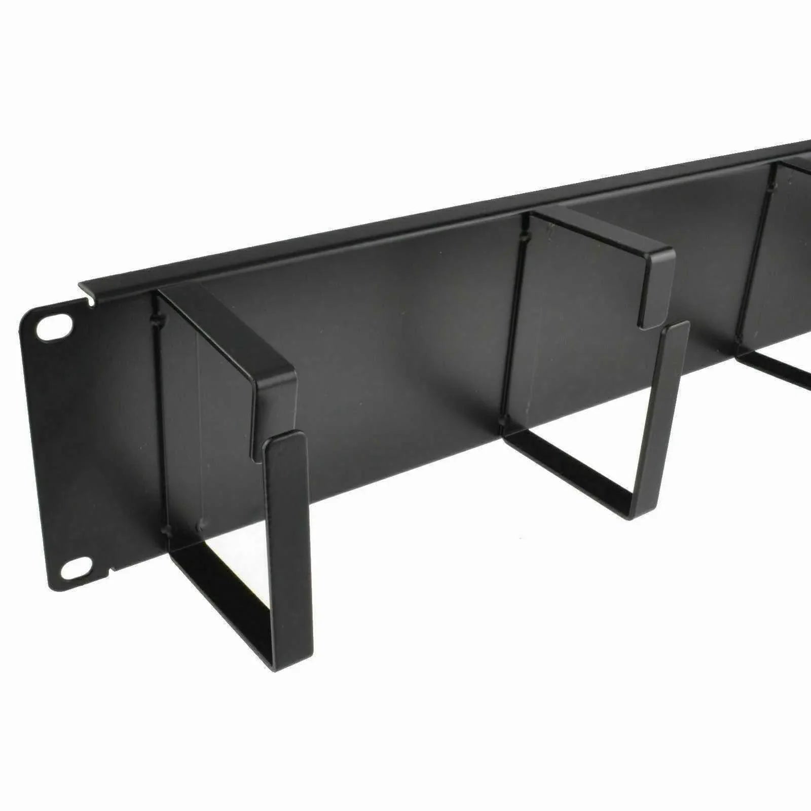 This 2U high, 19‑inch rack‑mount cable management bar is fitted with four sturdy metal D‑rings, ideal for organising Ethernet, fibre, coax or other cables in server racks.