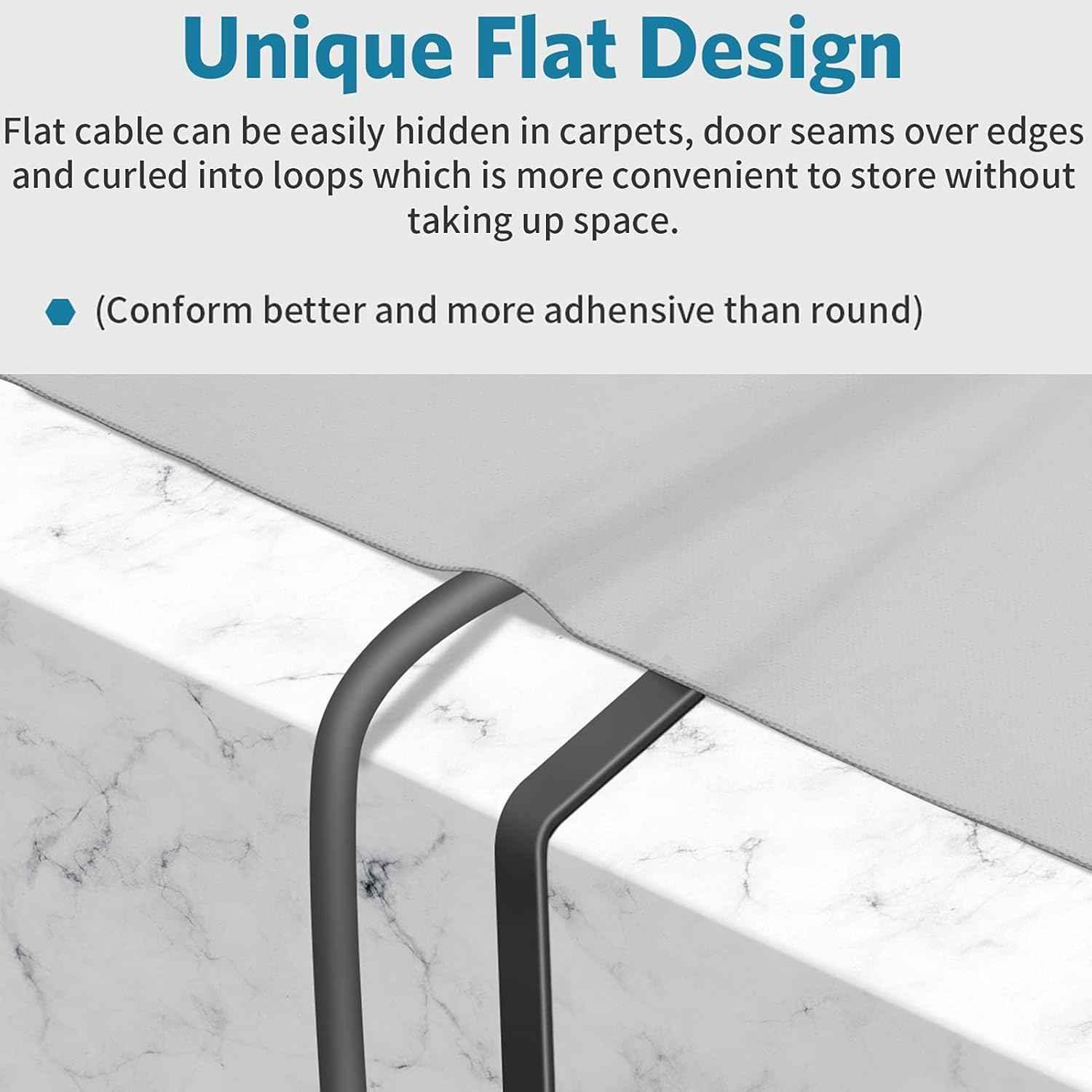 Unique Flat Design: Slim and flexible, easily hidden under carpets or along walls.