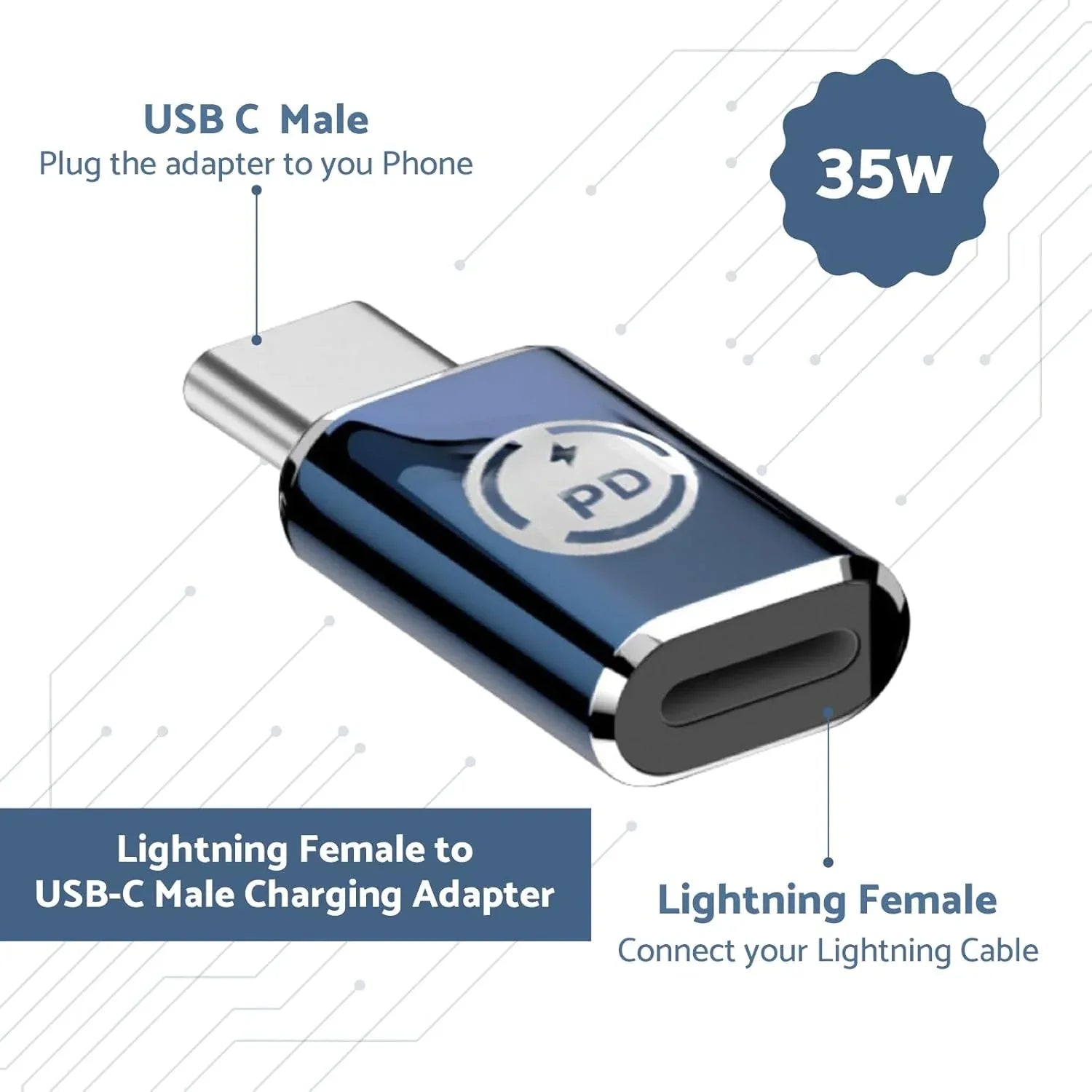 ️ iOS To USB C Adapter 35W PD Super Fast Charge for iPhones with USB C Power Port, use your iOS charger to power other USB-C Chargeable Devices!
