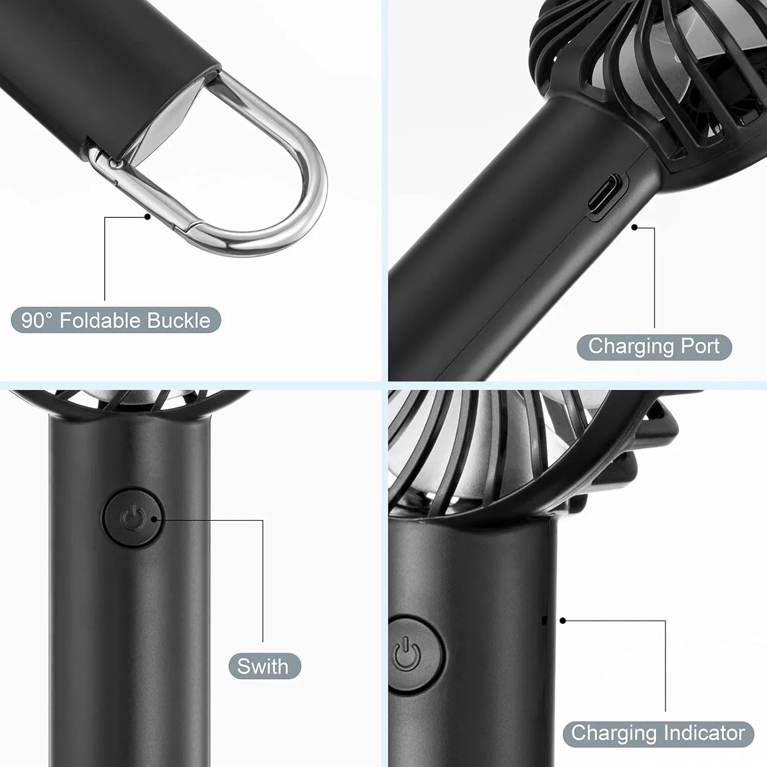 Portable Hand-held Fan Mini Fan Cooling USB Rechargeable 3 Speed With Clip Black