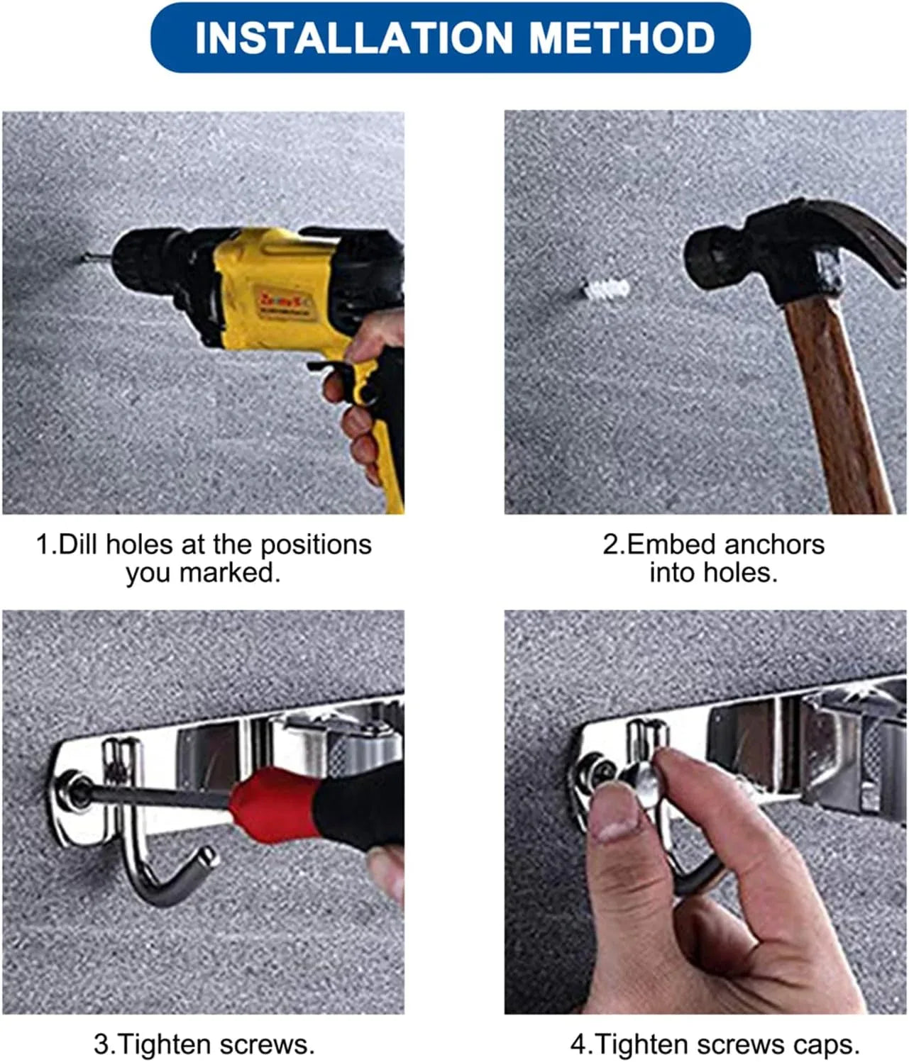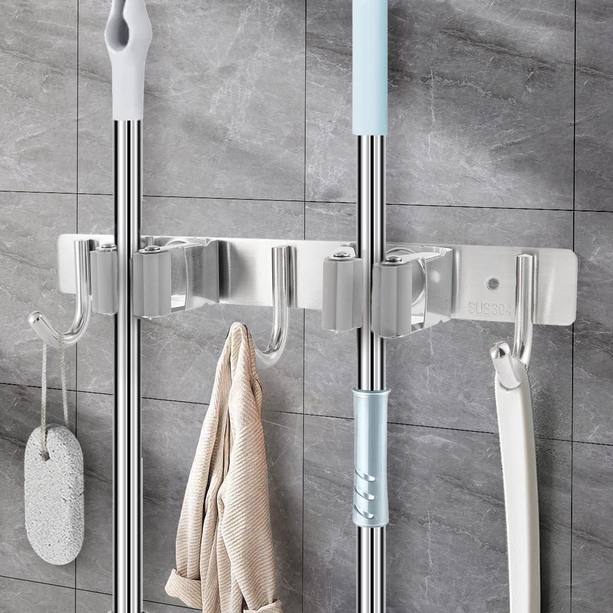 Mop Broom Holder Wall Mounted Heavy Duty Clips & Hangers Storage Rack 2 Hooks
