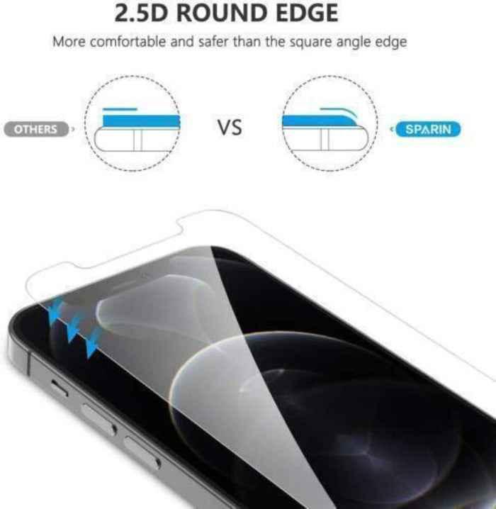 SPARIN 4 Pack Screen Protector Compatible with iPhone 12 Pro Max 6.7"Easy installation: Easy Alignment Tool designed for iPhone 12 & 13 Pro Max 6.7 Inch. Perfectly fits your phoneThe 2.5D round edge provides more comfortable handle feeling than the right-angle edge, and will never hurt your fingersThe thickness of 0.18mm offers excellent sensitivity as on the original screen, the level of transparency keeps a natural visual clarityThe oleophobic coating prevents fingerprints and other stains and facilitates the cleaning of the protective glassTempered glass durability rated at 9H hardness to protect from everyday scratches