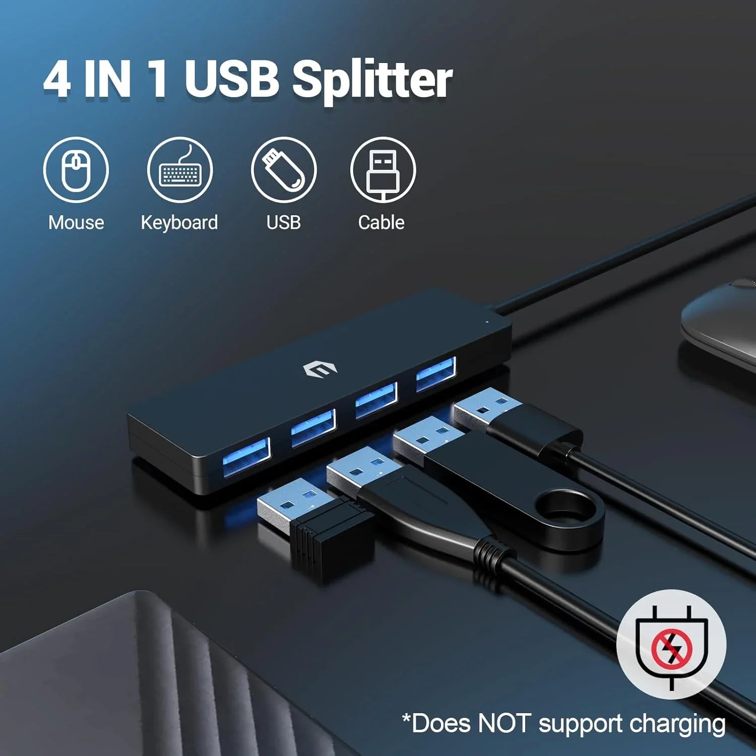 USB 3.0 Hub 4-Port USB Hub Multiplier Expander for Laptop HDD Console Car etc